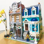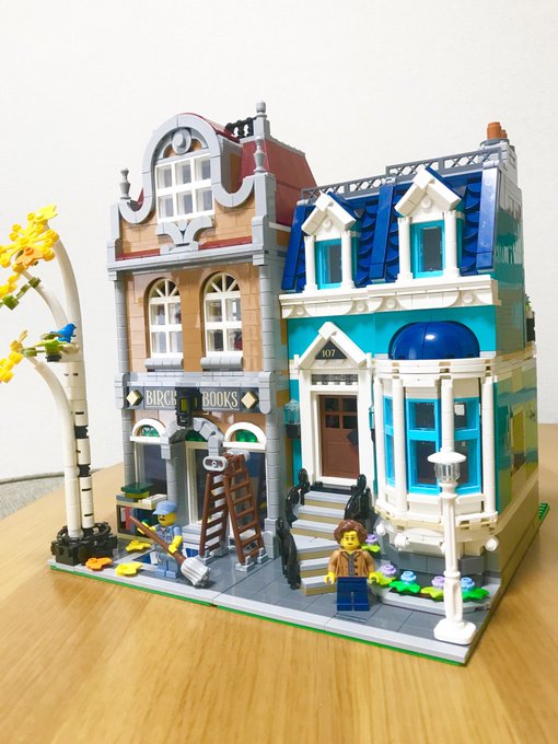 レゴの本屋さんついに完成しました✨ 背面の庭をボタニカルセットのパーツで少しアレンジしてます。 #LEGO #レゴ #モジュラービルディング #オモ写