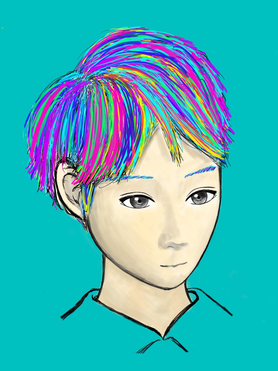 apple pencil忘れて指描きしたやつ。目が怖すぎる笑 #イラスト