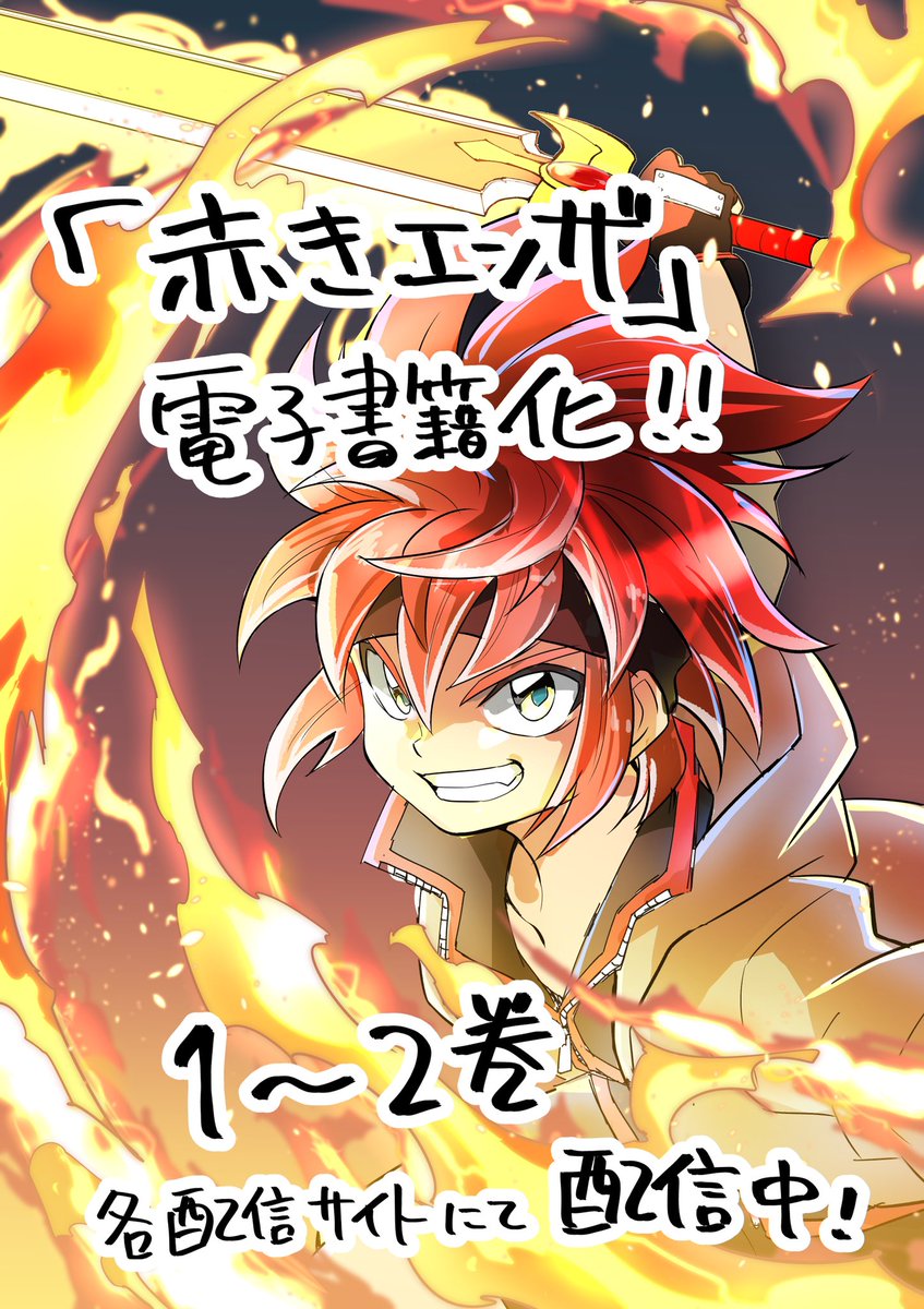 そしてこのタイミングで、自身のデビュー作「赤きエンザ」の電子書籍が各配信サイト様にて配信されました!🔥⚔🔥 作者も驚きの14年前の作品です(じゅ14年…?) どうかこの流れで未収録の幻の3巻が配信される事を切に願います…🙏 shogakukan.co.jp/digital/091405…