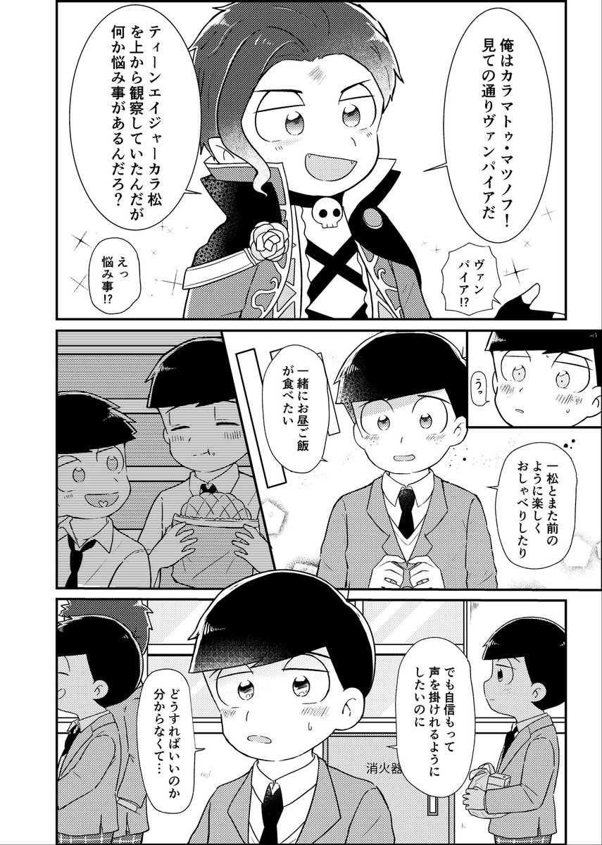 【1月9日家宝】⭐️新刊サンプル A5/28P/300円/全年齢 学生一カラでカラ松がヴァンパイアになるお話です。 よろしくお願いします! ちょい長めのサンプル→pixiv.net/artworks/93932…