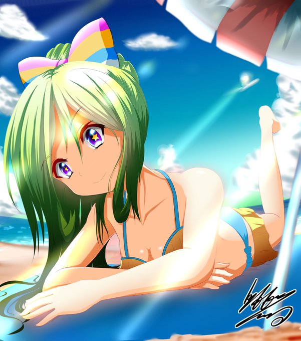 獣神化記念で、レンブラントの水着verを描きました°3° #モンストイラスト