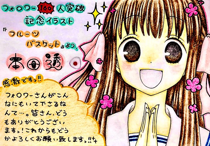 フォロワー160人突破*\(^o^)/*✨ フォロワーさんがこの先何人になっても、10人毎にお祝い絵を描く事は変えないつもりです(めでたいので)。皆様、これからも宜しくお願い致します^ ^ #1日1絵 #イラスト #絵描きさんと繋がりたい #イラスト好きさんと繋がりたい #フルーツバスケット