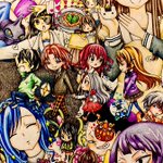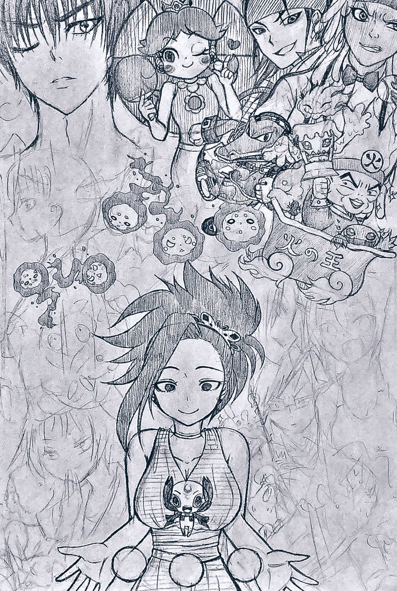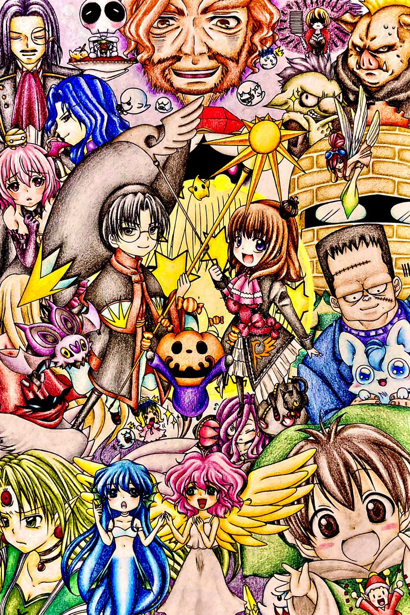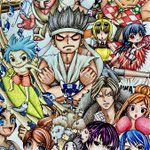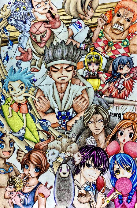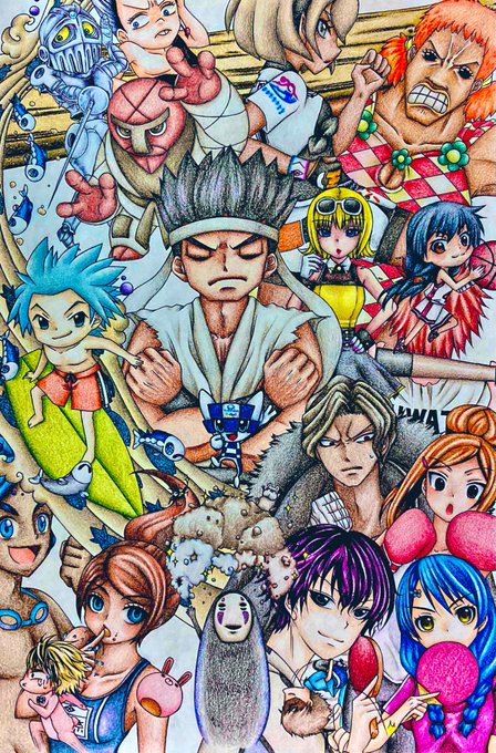7月分ごちゃ絵、ようやく完成*\(^o^)/* メダル獲得したオリンピック競技を参考に、キャラを選別して描きました。全体的に茶色くなるかと思ったけど、意外とそんな事なくてよかった😓 #1日1絵 #イラスト #絵描きさんと繋がりたい #イラスト好きさんと繋がりたい