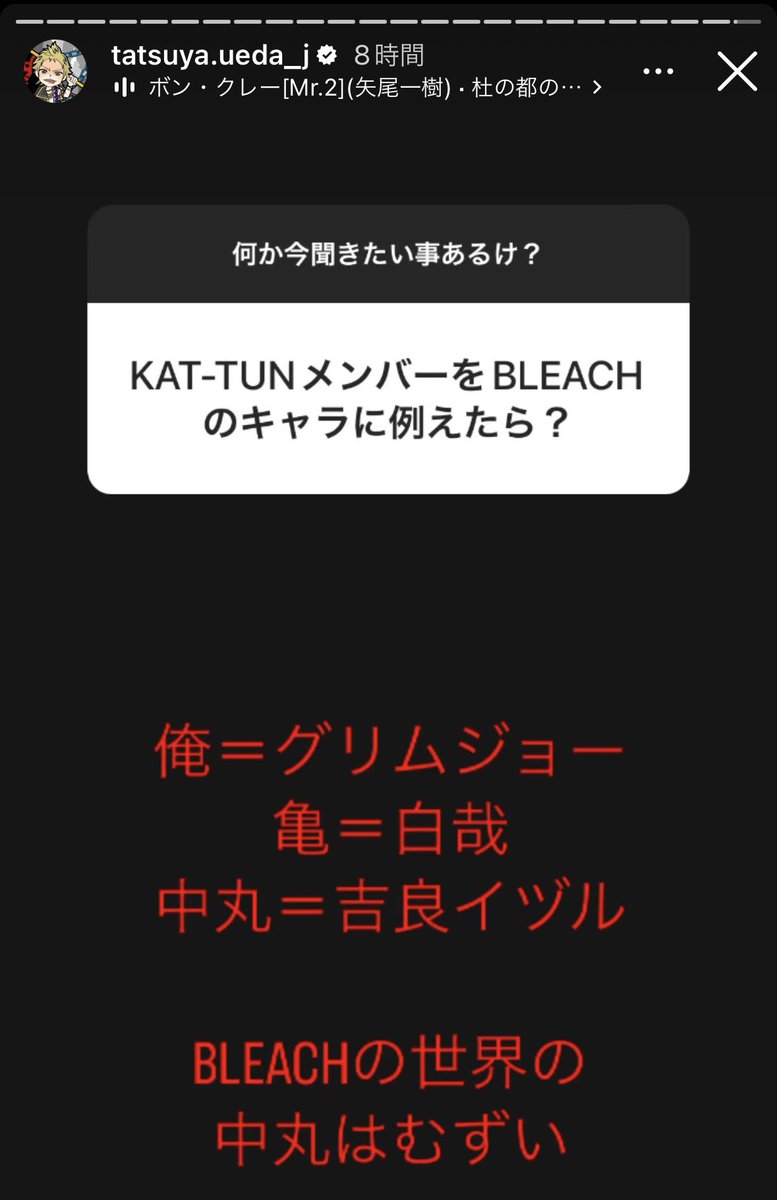 20 78 上田竜也がKAT-TUNメンバーをアニメや漫画のキャラに例えたら 23/06/25 09:52