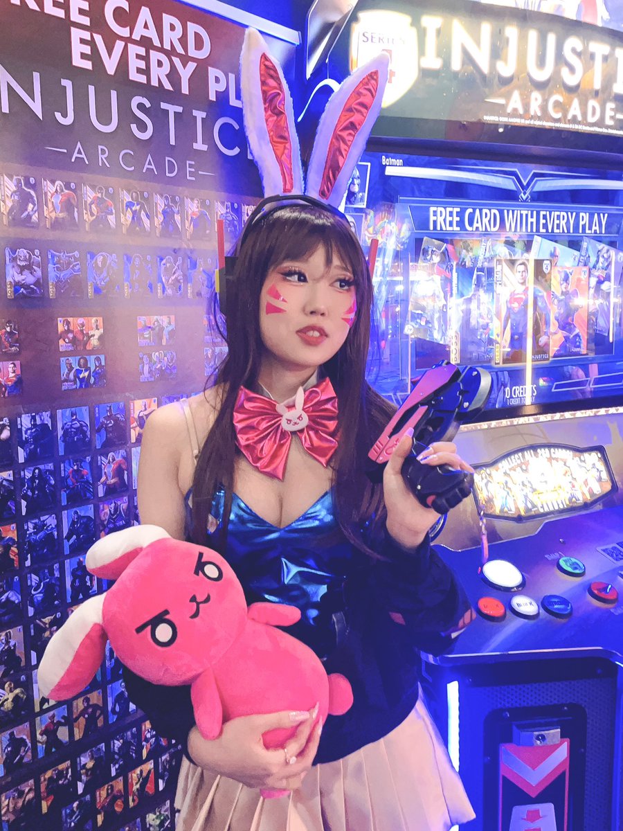 Full bunny suit hidden Bc the arcade is a family friendly :) #cosplay #cosplaygirl #dvacosplay #overwatchcosplay