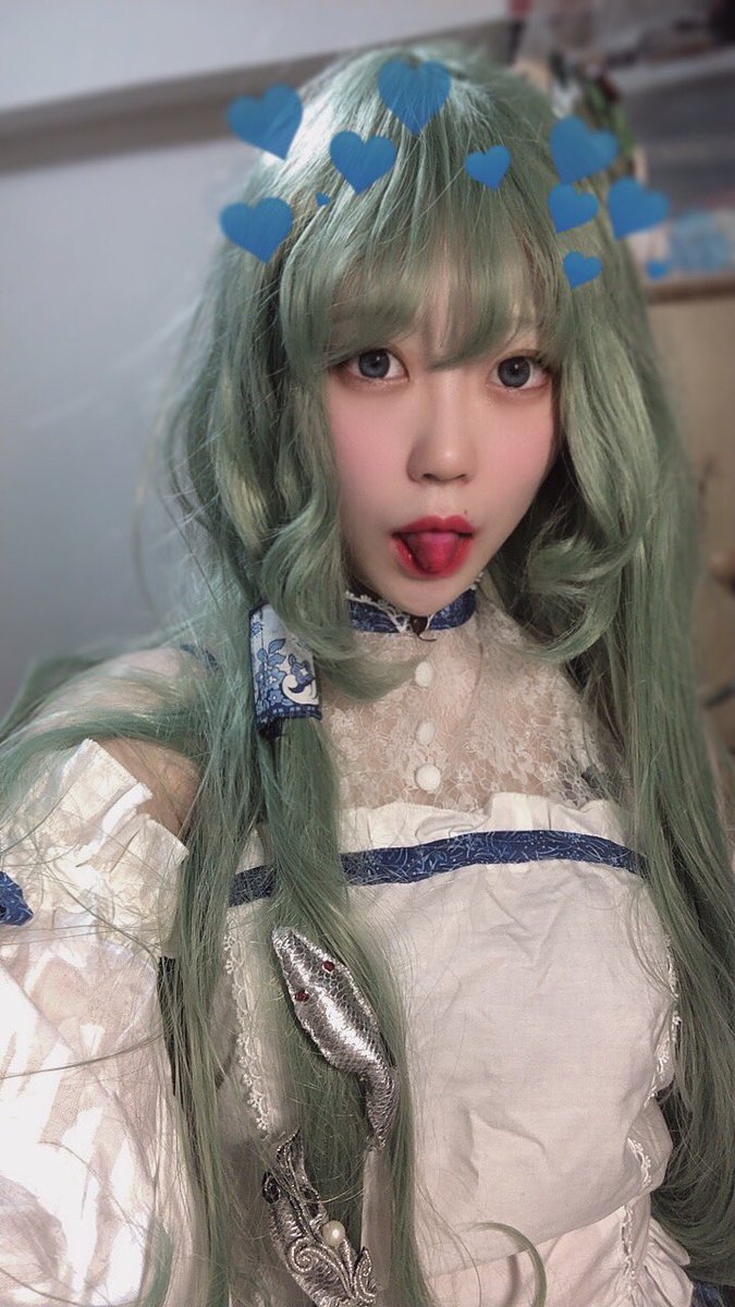早苗サン第二弾 毛先がくるくるできた(わかりづらい) #東方レイヤー #宅コス #東風谷早苗