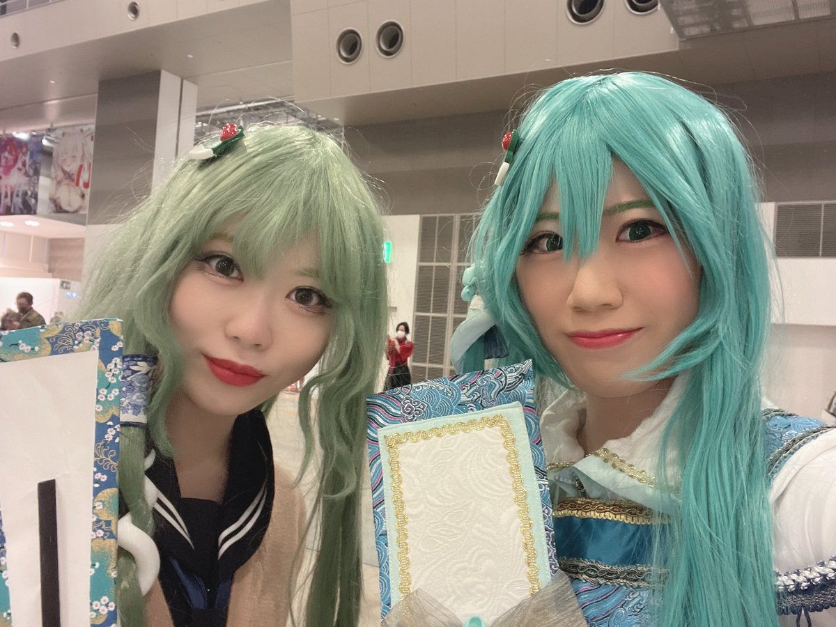 10 60 巫女服と制服早苗さん💚 早苗さんいるな〜とおもってたのでツーショ撮れて嬉しかったです! ありがとうございました〜☺️ #C99 #C99コスプレ 22/01/02 13:58