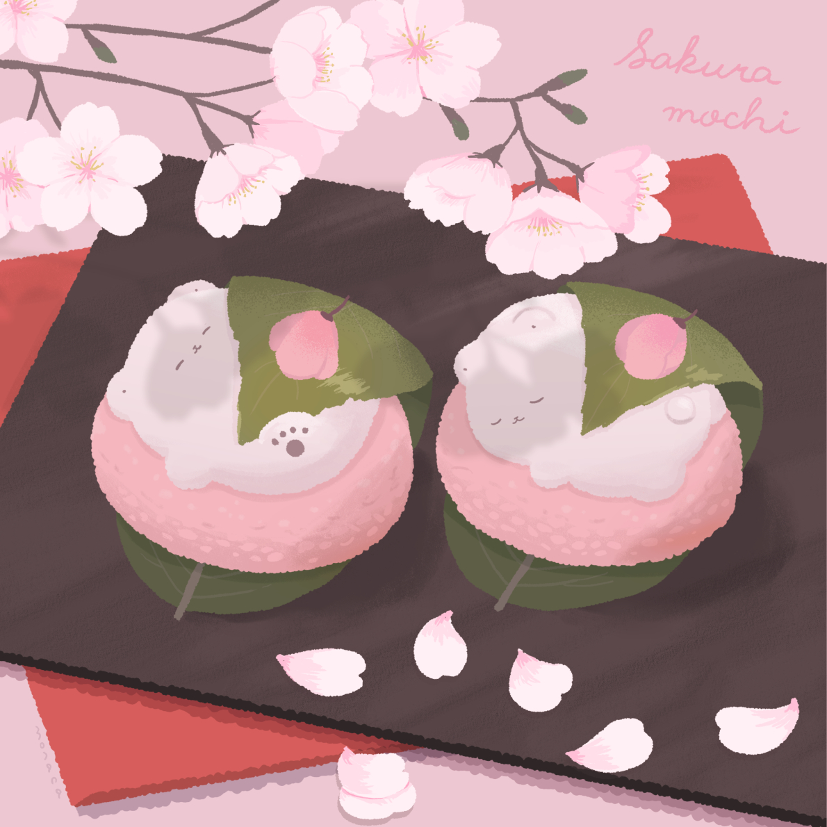 桜もちくま🌸 #ゆるいイラスト #食べ物イラスト #イラスト