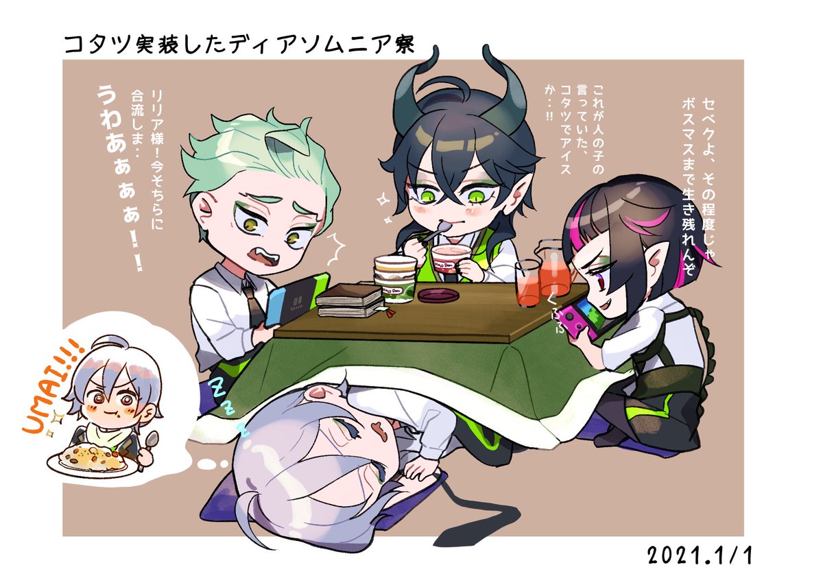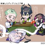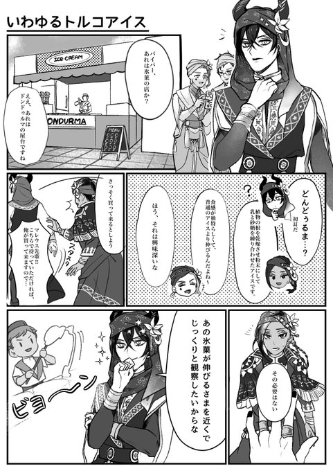 【ツノ太郎、トルコアイスを買う】 マレウス様のイベントカードボイスで 「兄ちゃんよく食うねぇ」と声かけたのがアイス屋さんだったら、という話。 ⚠︎衣装、顔ありモブなど捏造要素あり #ツイステファンアート #twstファンアート