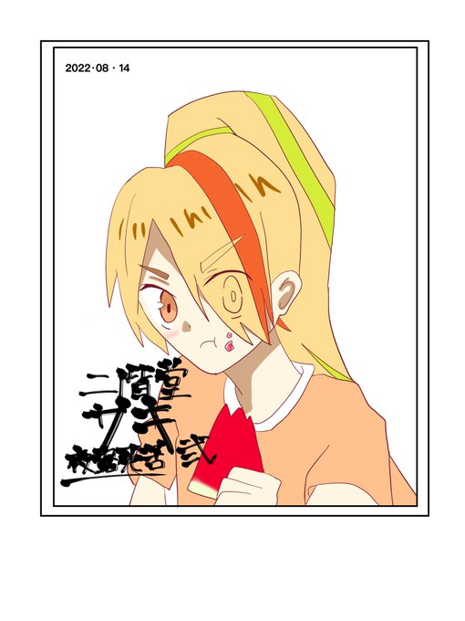 15 64 #ゾンサガ版深夜の真剣お絵かき60分一本勝負 お題【スイカ】 「2号さんのスイカ食べてるチェキゲットできたけんね!」 ちょっと遅刻しちゃったけど… 22/08/14 23:36