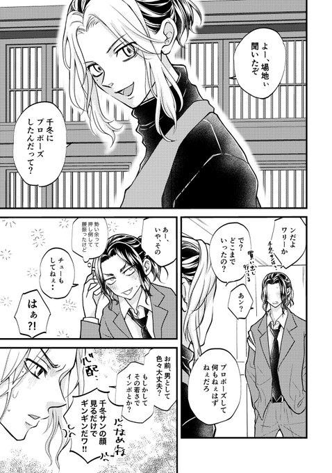 115 1361 #ばじふゆワンウィーク お題「抜け駆け」 付き合ってる🐺❄️スピオフトリオ みんな抜け駆けしてる関係いいよね… (1/2) 23/08/12 20:50