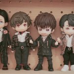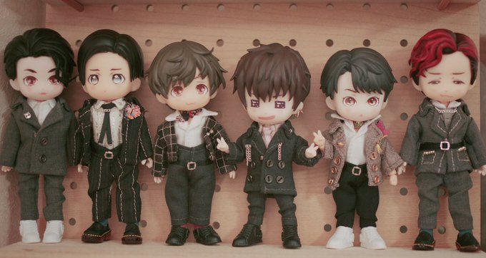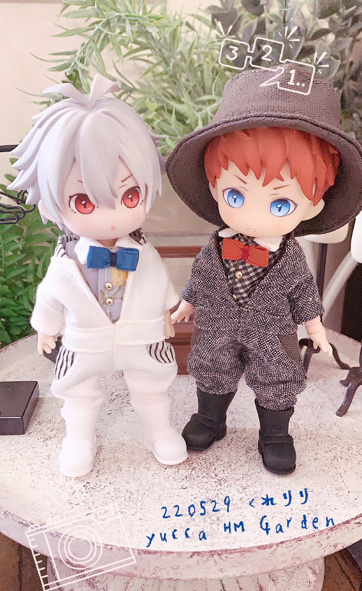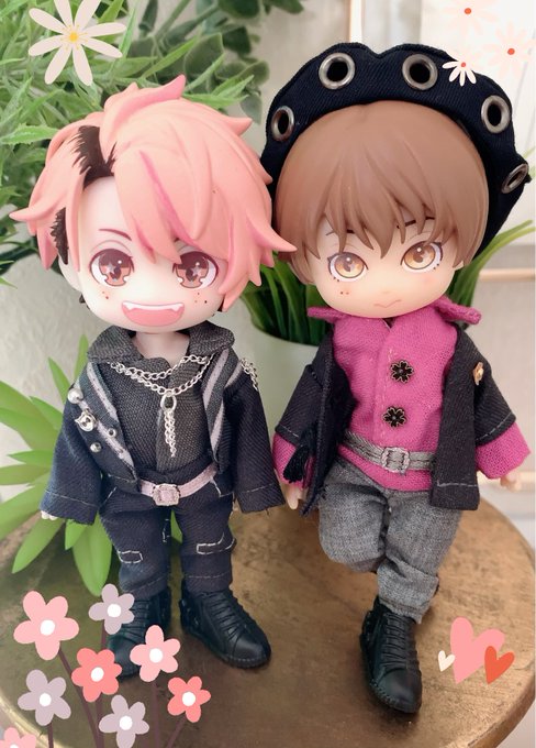 連日沢山の反応ありがとうございます🙏 アー写っぽい並びも撮ってみた〜 作ってる時点で身長差には拘ったけど、髪型とか靴のデザインでどうにもならないこともある #綴れつないでいこう #タペストリー #スノねん