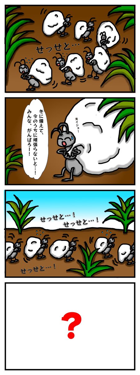 今日は、#36の日。残業ネタ→おとなの…4コマ漫画。第21回「アリとキリギリス 平成ver」 4コマ目は⬇️mongorianthoop.seesaa.net/article/480579… #イラスト好きさんと繋がりたい #4コマ漫画 #イラスト #漫画が読めるハッシュタグ #絵師さんと繋がりたい #絵描きさんと繋がりたい #芸術同盟 #アトリエの系譜 #36協定