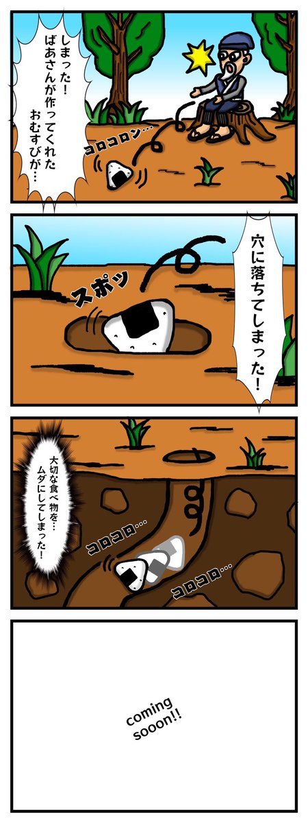 【おとなの…4コマ漫画。】新作3コマ目投稿〜!「おむすびころりん 令和ver」気になる4コマ目とは…⁉︎楽しみにお待ちくださ〜い(^^)v #イラスト好きさんと繋がりたい #4コマ漫画 #イラスト #漫画が読めるハッシュタグ #絵師さんと繋がりたい #絵描きさんと繋がりたい #芸術同盟 #アトリエの系譜