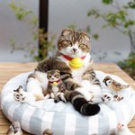 スコティッシュフォールドのうずらちゃん、今回はスコ座りでとのオーダー。うずらちゃんとスズメさんの世界を再現してみました😆 @yayoi_89 #スコティッシュフォールド #ScottishFold #羊毛フェルト