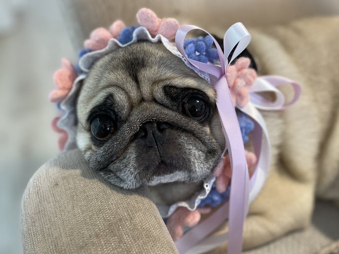 #フレンチブルドッグ 小梅ちゃんお空組🌈 小梅ちゃんリンパ腫とのたたかいでママさんも最後はとても辛い経験をされたとの事🥹色んなお写真を見させて頂いた中で、花冠が可愛かったのでお人形に合わせて作りました🌸 #羊毛フェルト