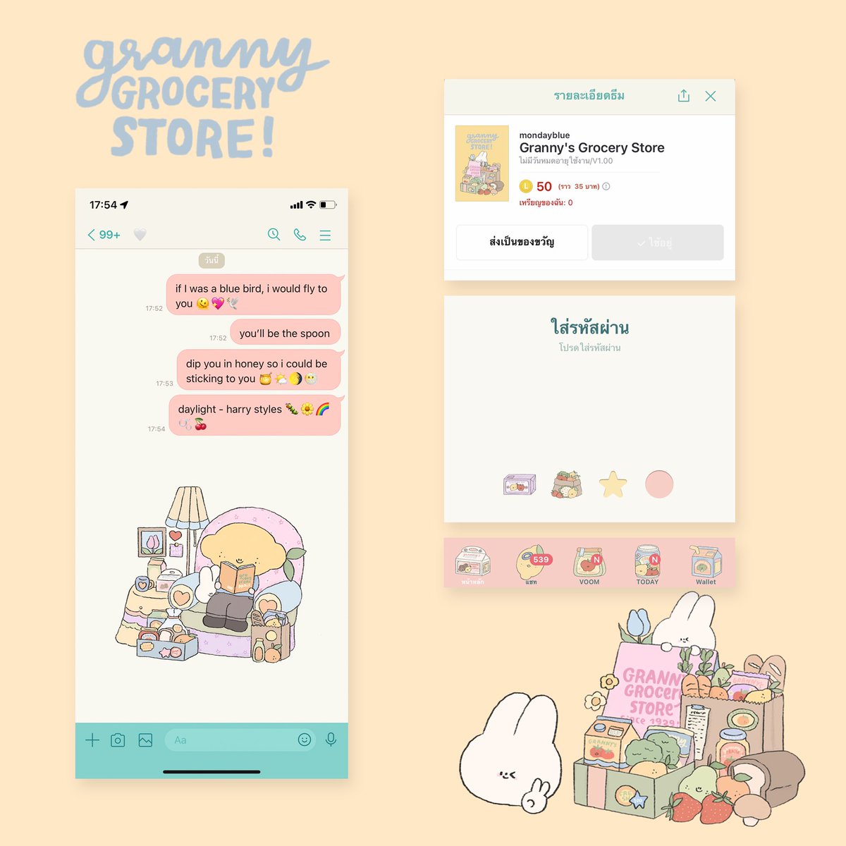 พาน้องใหม่มานำเสนอออ Granny’s grocery store ค่า 🌼🌷💐 50 coins เต้าอั้นน [Granny's Grocery Store] line.me/S/shop/theme/d…