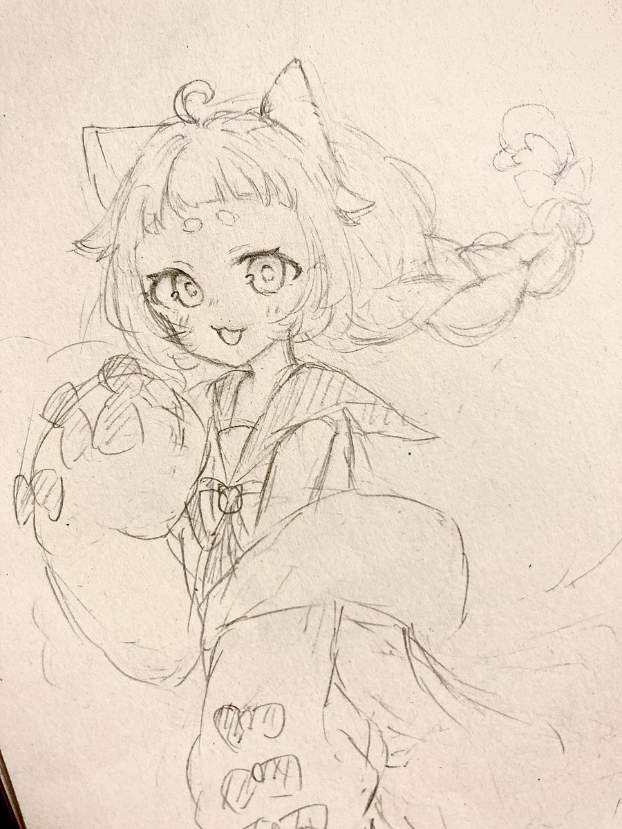 途中がけですがうちの子「もねこ」ちゃんの新デザです🎀 FAタグ: #もねあーと 落書きでもなんでもOKです!描いてくださったらめちゃ喜びます!!