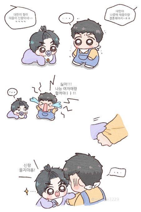 애기 탱댐이들 상상하니 견딜 쑤 없어서 그려버렸어용🥹🥹🥹결국 성인되가꼬 결혼하게쬬 으하하ㅏㅏ🥹 🥹문제가 된다믄 지울게용🥹🥹 twitter.com/L0VEisCURSE/st…