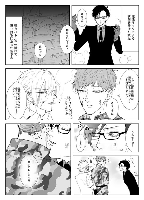 68 394 #理銃ワンドロお題 お題 違法🎤 遅刻参加ですがお題&タグお借りしました🙇 作中で説明できなかったけど自分に向けられた感情が”におい”として感じられる効果という設定でした 23/02/20 01:43