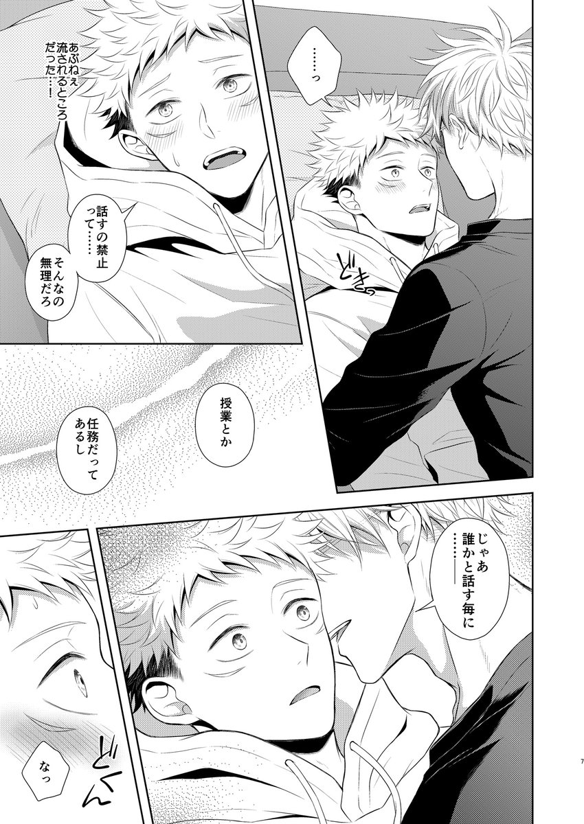五悠新刊サンプルです! 「誰かと話す毎に1回XXXする」という先生の言葉を冗談だと思ったゆじくんがいっぱいXXXされる羽目になる本です。表紙デザイン:nzworks様(@_nzworks_) #空オレ_0925_頒布