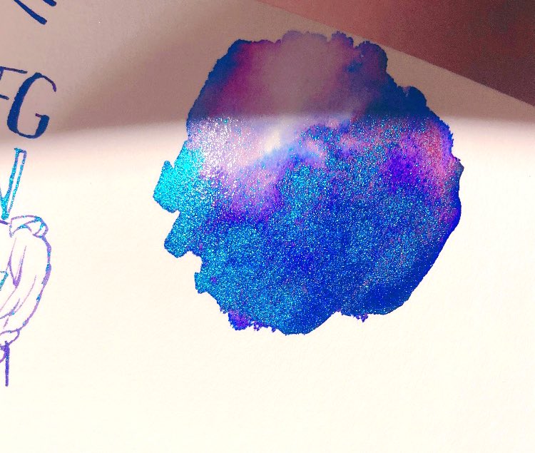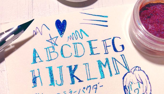 20 48 むらさきのカラーインクにセリアに売ってるミラーパウダー(1枚目の端に写ってるやつ)を混ぜて書いたものがこちらです 21/08/04 22:50