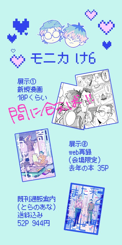 明日(今日)のおしながきです🍮🍈! 新しい漫画は間に合うか分からないのですが去年出した同人誌を会場限定で再録しますのでお暇があれば見にきてください🙌(この本:pixiv.net/artworks/99841…) #ろささwebオンリー #うぃずこめ