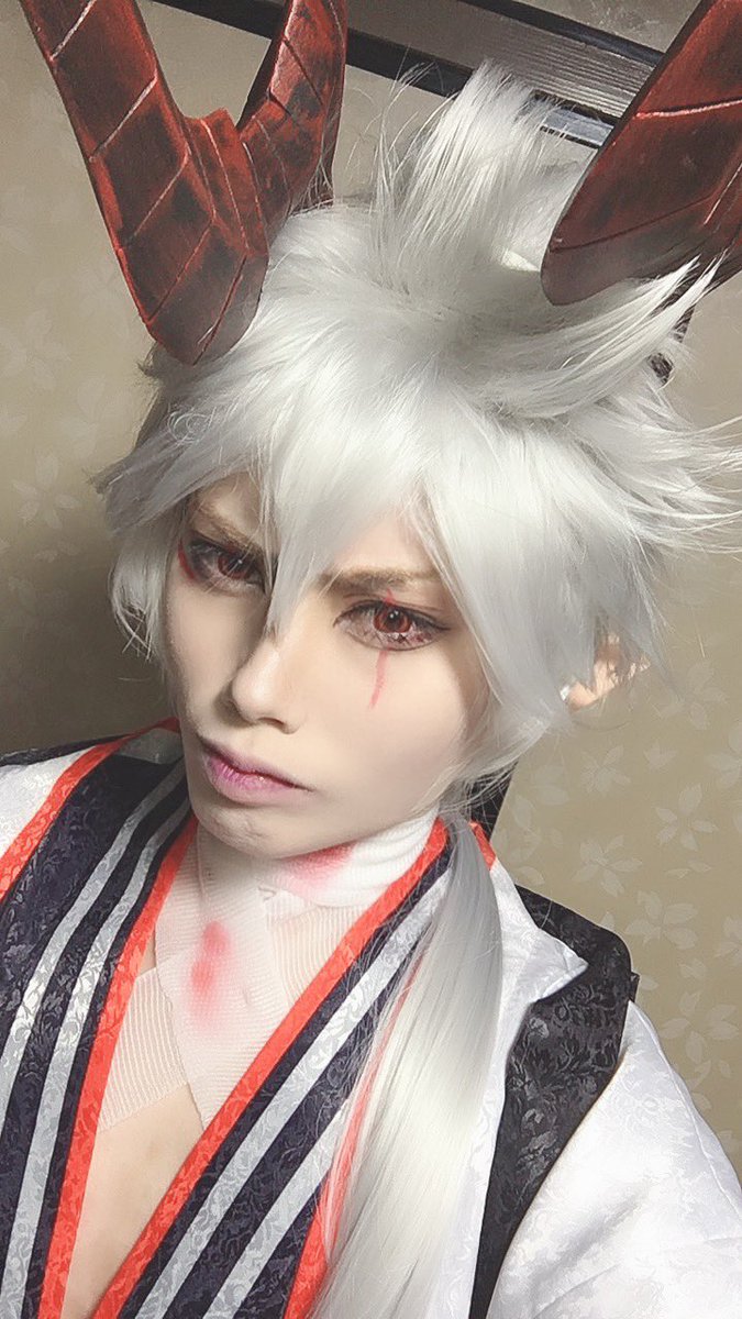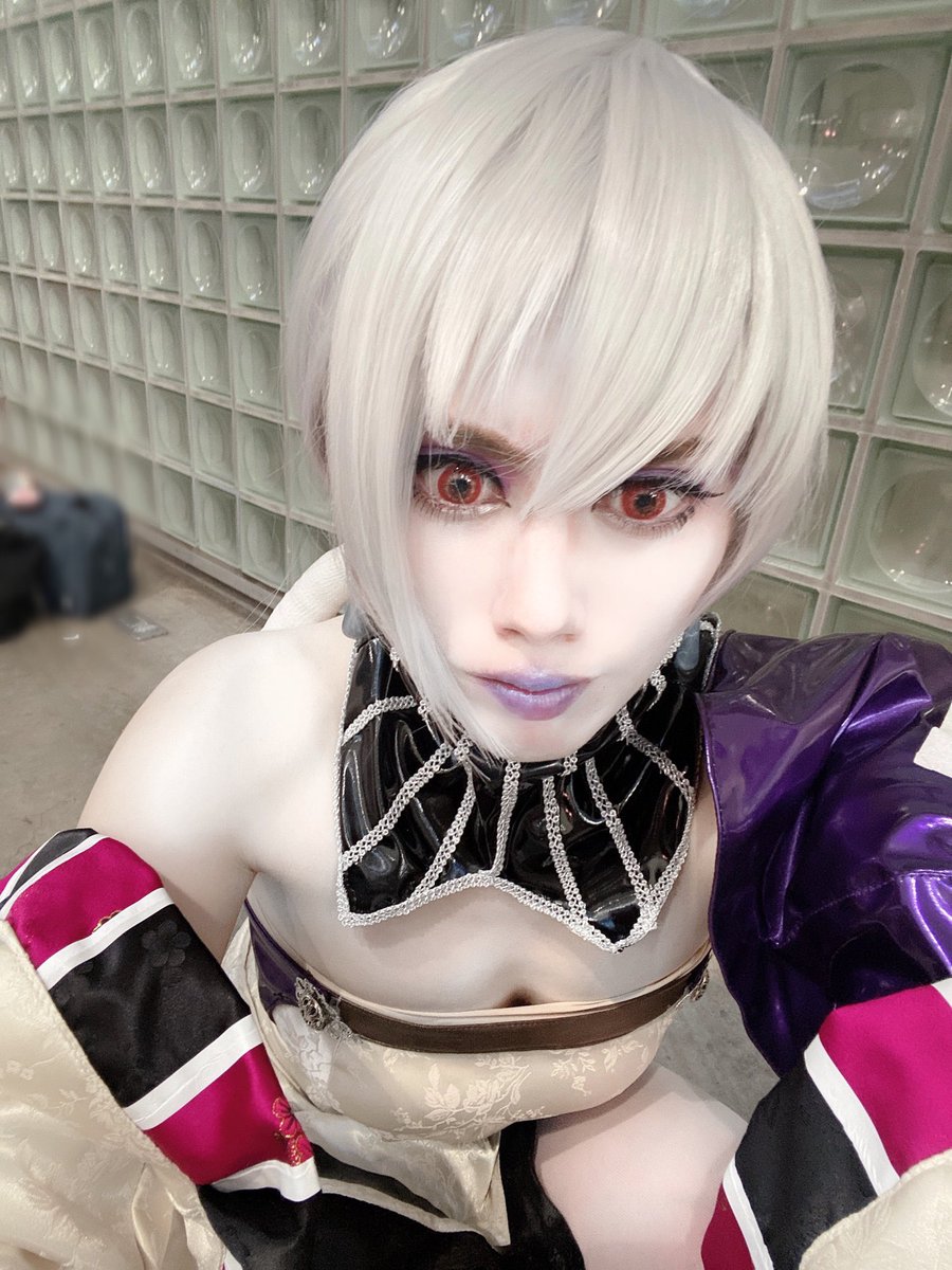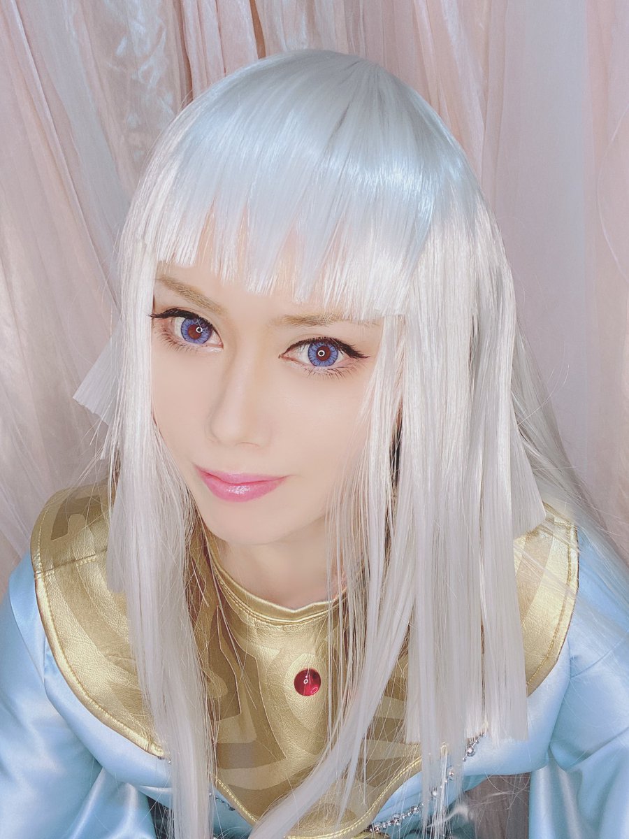 #みんなの約1年前の写真を見せて 去年は唐突に原作版のウィッグ作りたくなって、作ったら案の定宅コスしたくなって、真夏に和室で聖衣来て宅コス自撮りして汗だくになって死にかけた🤗 肩パーツ1人だと綺麗に付けられないマン