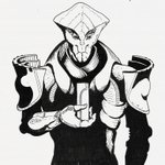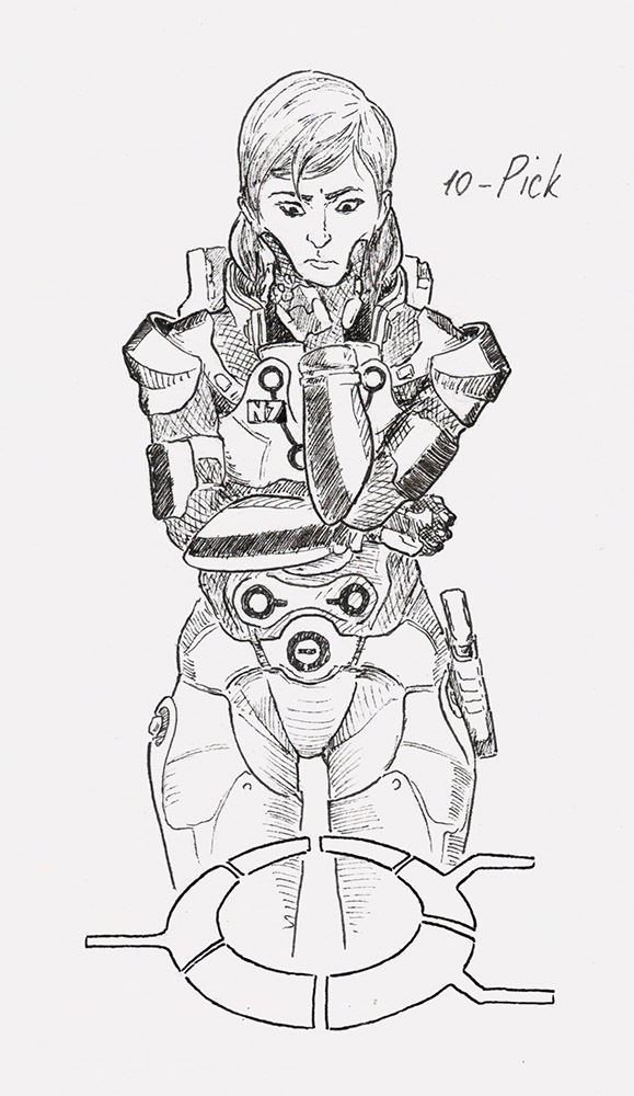 Буду выкладывать по две картинки для иллюзии наполненности контентом с': Сперва думал, что весь инктобер посвящу масэфекту - многие темы хорошо подходили. Но в конце сентября начал лечить нервы Лучшей Игрой, в итоге половину картинок сделал по халфайфу. #inktober2021 #MassEffect