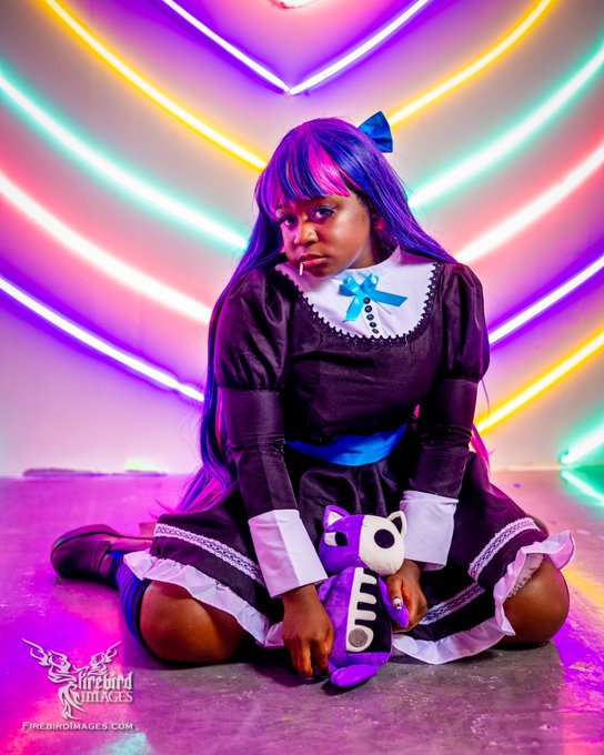 “I got sweet tooth for lollipops Loli goth, I lick good!” 📸@FirebirdImages . . . #cosplay #AOTC #theeartofthecollab #AOTCDallas #FeverReliever #FeverRelieverCollab #AOTCMagazine #pantyandstocking #anime #cosplayer #blackcosplayer