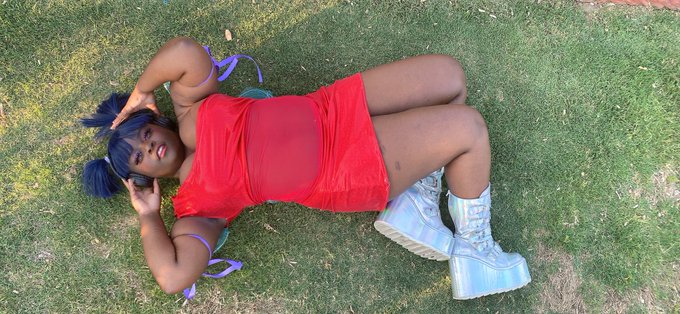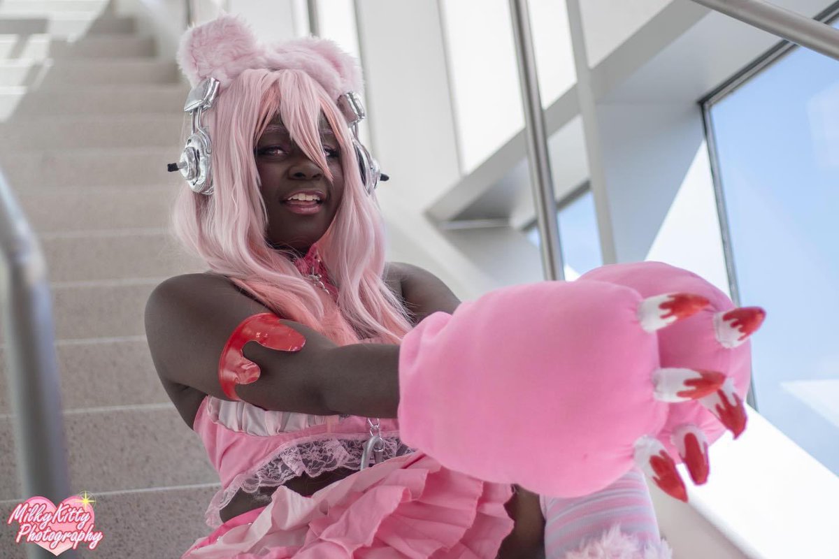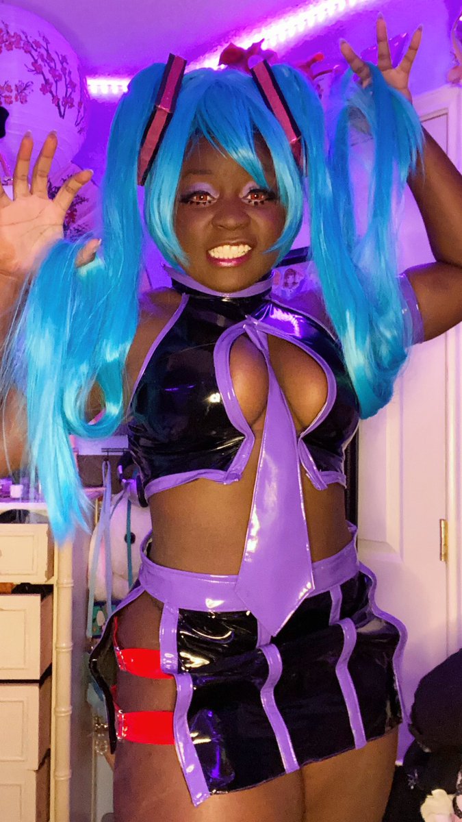 💜にゃ〜 In Coconut wearing @fakenerd’s Please Do Not Touch shorts~ #CosplayersUnder1k #cosplay #blackcosplayer #nekogirl