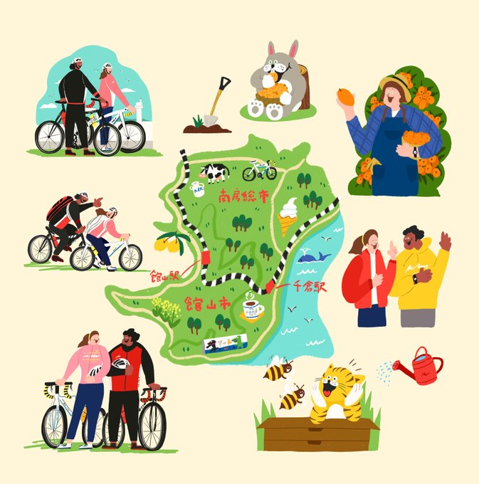 6 46 \ WORK / 千葉特集 第3弾✨ フリーマガジン「メトロミニッツ」最新号 千葉特集のillustration & 文字を担当しました!南房総・館山を満喫するサイクリングでの週末旅、千葉特集は今回で最終回です!そして今月号で創刊20周年という事でおめでとうございます🎉✨ #illustration #drawing #絵 #イラスト 22/11/24 21:04