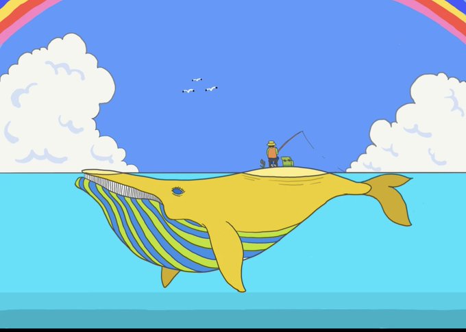 黄色いクジラと青い空 #イラスト #落書き #イラスト好きな人と繋がりたい