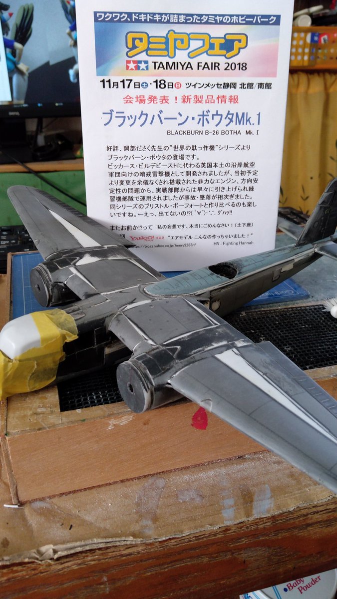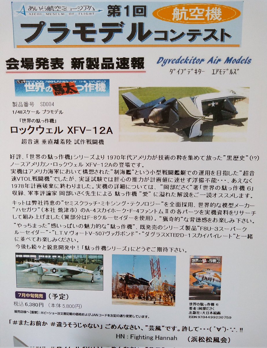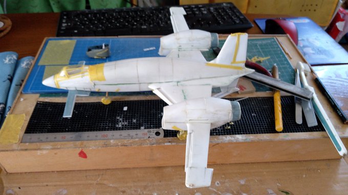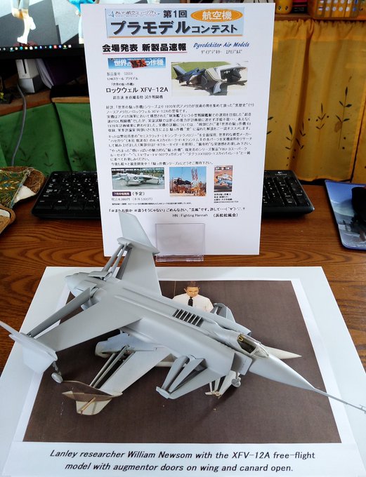 「まるで完成作品みたいだろ? これ、サフェーサー吹きっぱなしなんだぜ・・・。゚(゚´Д`゚)゚ では、搬入してきますね!(>_<)ゞ #あいち航空ミュージアム #世界の駄っ作機 #XFV12A