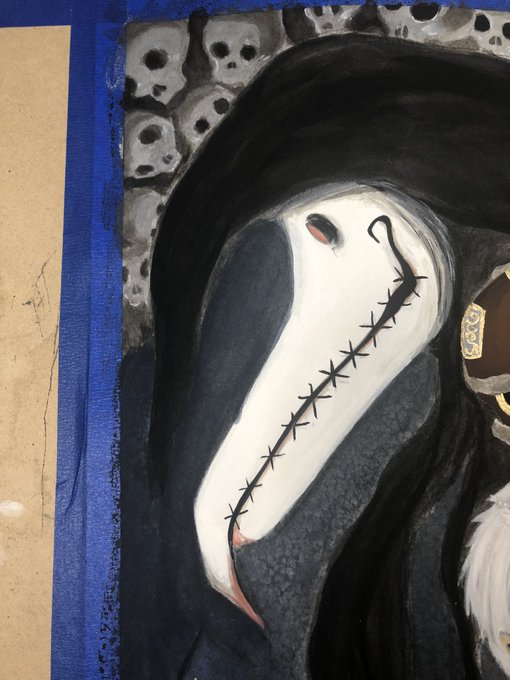Slow reveal 3. Orthax peeking over. I’ve always pictured the shadow demon having the same mask as Percy #watercolor #gouache #mixedmedia #CriticalRoleArt #criticalrolefanart #Criticalrole #percivalderolo #shadowdemon #ArtistOnTwitter #fanart