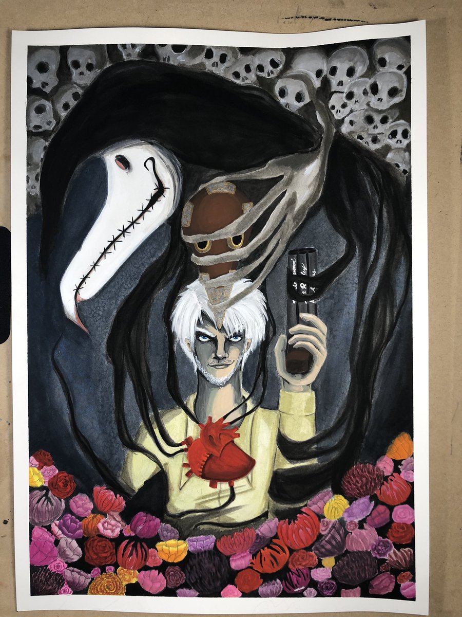 Here it is, finally. After many revisions and months redoing the artwork, I’m happy with how it turned out. I’m sure I won’t like it in a month 🤣🤣🤣 #Criticalrole #criticalrolefanart #watercolor #gouache #mixedmedia #fanart #ArtistOnTwitter
