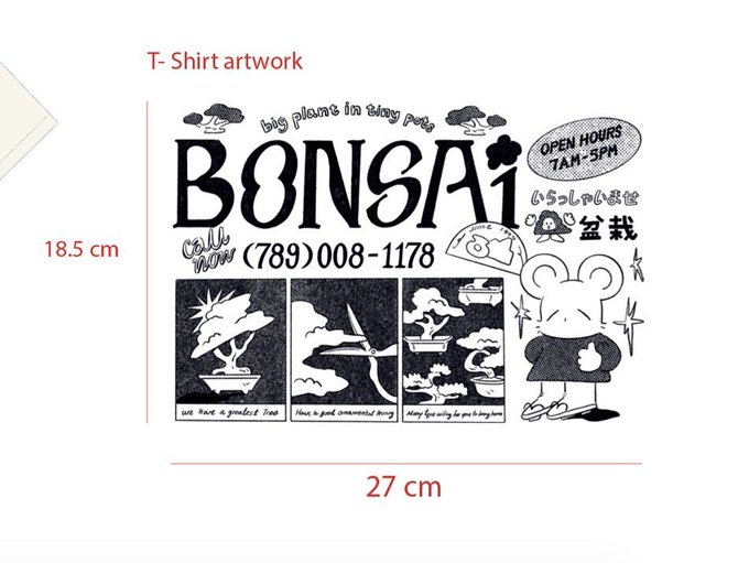 ของเราปีนี้เป็นเสื้อน้องบอนไซ วาดลายแบบเอาแต่ใจมาก อยากเลี้ยงบอนไซเลยนั่งดูวิธีการเลี้ยงแล้วอิน5555 คิดว่าถ้ามีร้านก็อยากโฆษณาประมาณนี้ เลือกผ้าให้เหมาะกับมู้ด ทำป้ายโลโก้เย็บเสื้อด้วย สุดท้ายมันคงเป็นความภูมิใจที่ได้ลองทำอะไรใหม่ๆ แล้วพบว่าก็ทำได้นี่หว่า twitter.com/a_pimnapassiri…