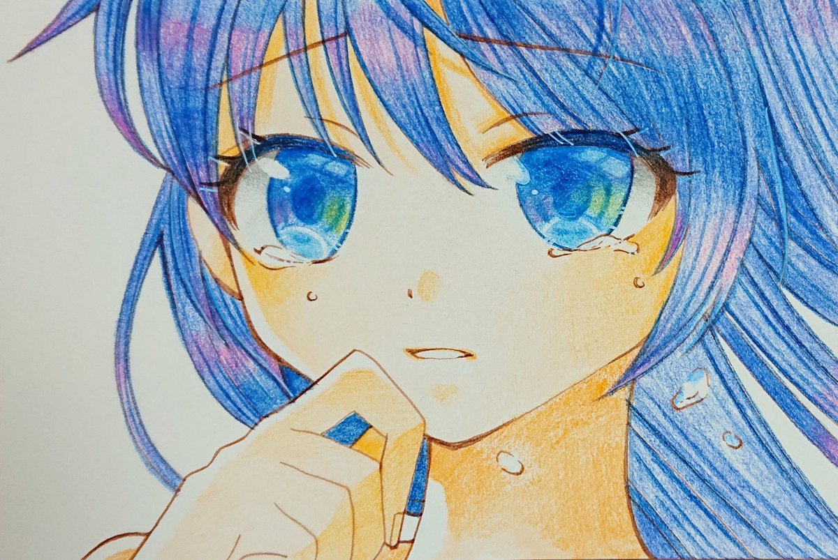 とにかく女の子の顔というか瞳が描きたい衝動で描きました☺️おめめのうるおい感が伝わればと思います。 今回は塗りは全部色鉛筆でやってみました!ちょっと厚塗り風になりますね。 #絵描きさんと繫がりたい #色鉛筆
