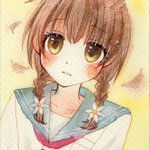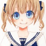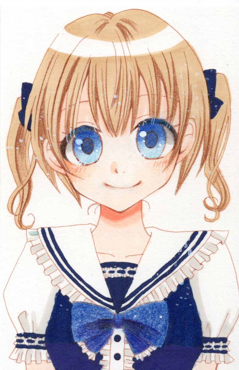 セーラー襟の女の子☺️ コピックと色鉛筆で塗ってみました。色鉛筆は細かく塗れるので便利ですね! この髪の色(コピック)すごい気に入ってます。 #絵描きさんと繋がりたい #コピック #女の子イラスト