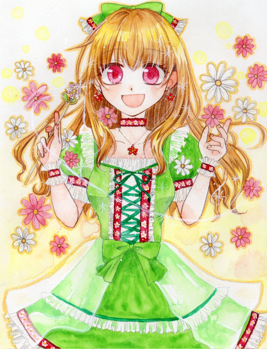 「幸せの花舞う」 GALLERY IYN様に出展した作品、写真しか撮ってなかったので今日やっとスキャンしました(笑) やっぱりスキャンしたほうが色が綺麗に出る✨ #絵描きさんと繫がりたい #コピック #コピックイラスト
