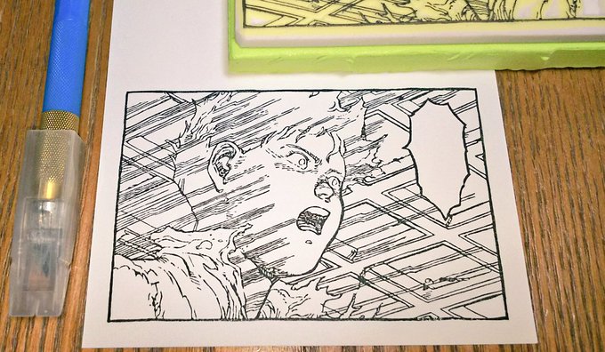 僕のヒーローアカデミアから、荼毘(ダビ)を彫ってみた。100均消しハン仕様、サイズはポストカードと比較。 久しぶりにちょっと頑張ったから、見てくれ、、! #僕のヒーローアカデミア #ヒロアカ #消しゴムはんこ