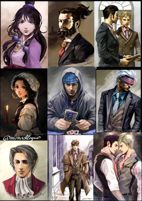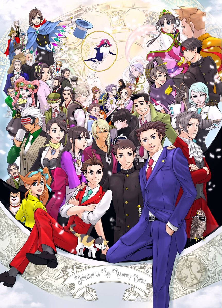 過去絵ですがイベント絵ですが、お祝いらしい集合絵を。🎉逆裁20周年おめでとうございます🎉 このゲームに出会って色々と人生が変わりましたので本当に感謝しています。