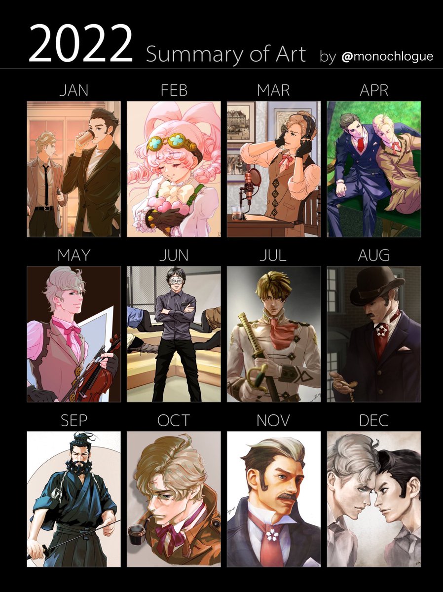 絵の一年を総括してみる。今年は抜けた月がなくて良かったなぁ。大逆はもとより、omkr絵も思い切ってもっと描きたいな。 #2022年を振り返る #ArtSummary2022