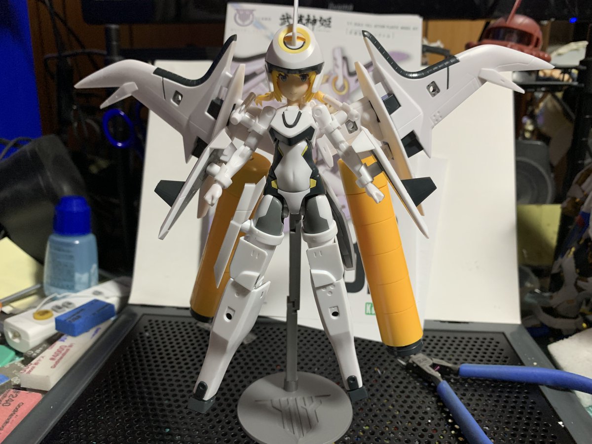 アーンヴァル完成、パチ組みでもほぼ完璧な色分け、スミ入れだけでも充分良さそうですね #メガミデバイス #武装神姫 #アーンヴァル