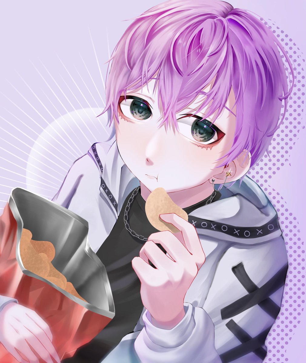 ポテチ美味しい #コンセプトアート #illustrationart #創作イラスト #オリジナル #創作 #イラスト #アート #絵 #デザイン #イラストグラム #illustration #illustrator #art #design #drawing #painting #artwork #落書き #らくがき #男の子 #boy #ピンク髪 #ポテトチップス