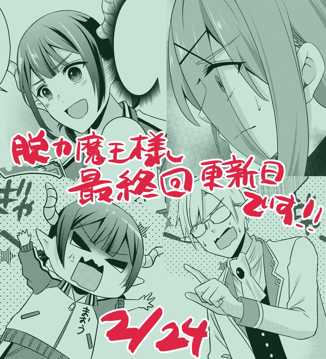 【お知らせ】本日は小学館のモバMAN(他)にて『脱力魔王様のサボり具合が深刻です』の最終回配信日になります! 1年間ひたすら楽しく魔王様達を描かせて頂きました!ご愛読頂きありがとうございました☺️✨ モバMAN↓ csbs.shogakukan.co.jp/book?book_grou… 各ネット書店↓ shogakukan.co.jp/purchase/digit… #脱力魔王様
