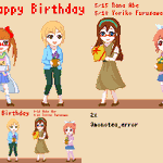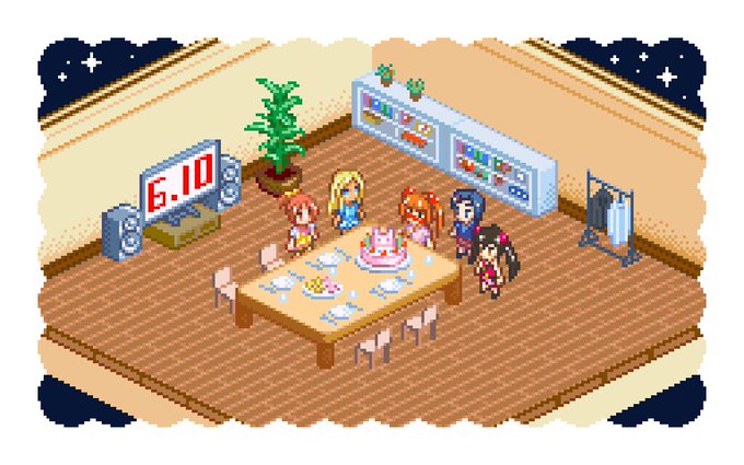 58 121 #デレマス #池袋晶葉生誕祭2019 #pixelart ライラ・的場梨沙・松尾千鶴・安部菜々で池袋晶葉の誕生日祝い。あなたの新しい一年が良き仲間に恵まれますように。 19/06/10 00:33