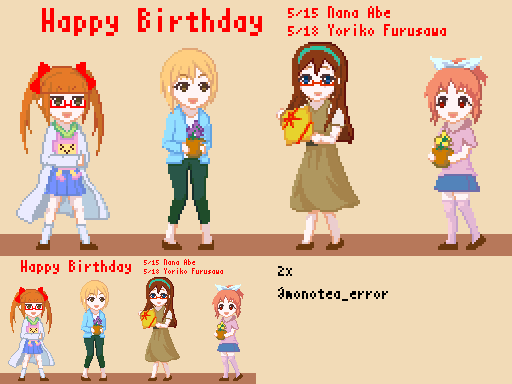 14 20 5月15日安部菜々さんの誕生日、5月18日古澤頼子さんの誕生日おめでとうで秋夜のお月見会(マージできてないレイヤーがあったのでアップロードしなおし) #安部菜々 #古澤頼子 #ドット絵 20/05/15 00:21