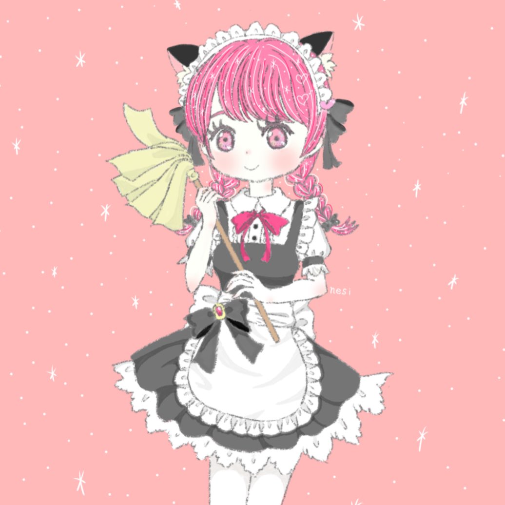 新人メイドのご紹介💕 猫耳メイド ねし 性格→明るく元気 特徴→ピンクの髪色 猫の扱いはお手の物🐱 猫を飼っているご主人様の元で 働いてもらっております☺️ #ゆるいイラスト #ゆる絵 #ゆるふわ #アイコン作成 #デジ絵 #デジタルイラスト #指描き #メイド @ayane_ramu