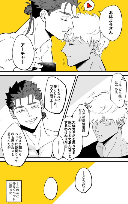 61 376 (槍弓らくがき) 犬猿の仲だったのが、紆余曲折を経て最中に自然とキスするくらいのハッッピー両思いになるやつ好…💙❤️ poipiku.com/1264736/859022… 23/04/10 23:22